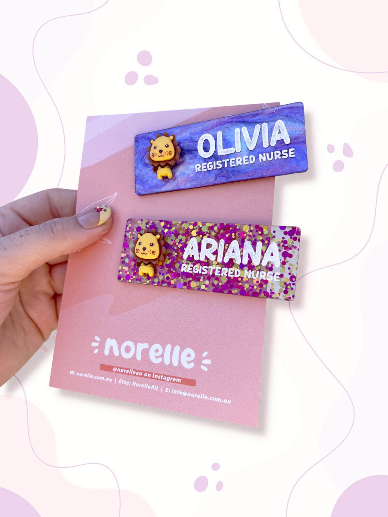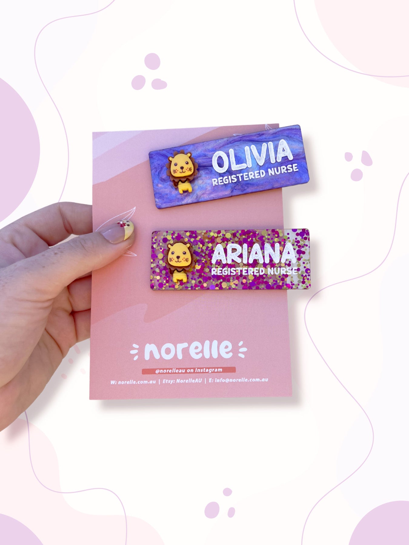 All name badge orders are made to order. For this reason, we do not accept returns or offer refunds for personalised items. Customers are responsible for providing correct spelling and details for each name badge. Norelle is not liable for errors submitted in the order. Payment is required in full prior to production. Standard production turnaround is 1-3 business days.