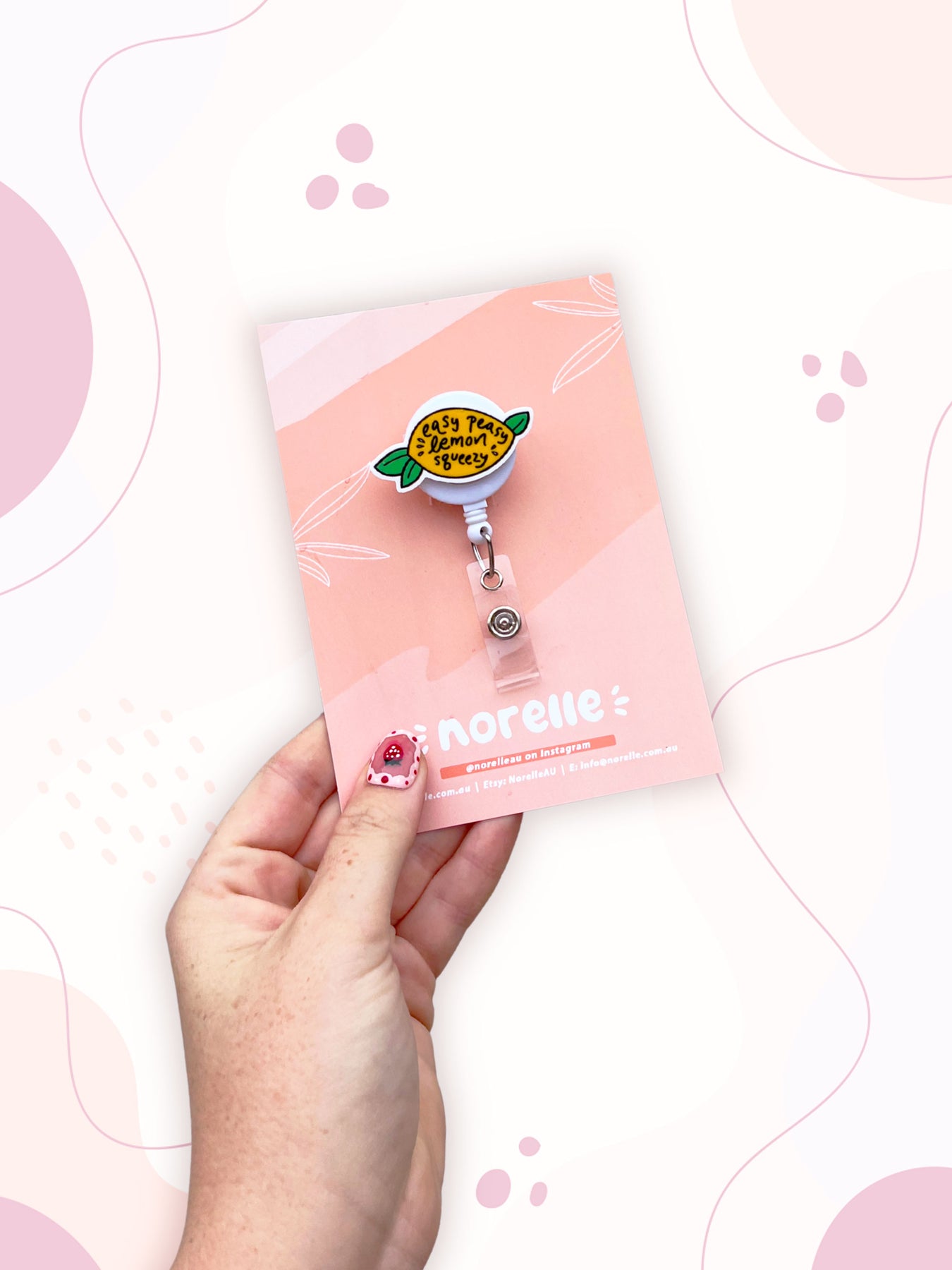 This 'easy peazy lemon squeezy' retractable reel is the perfect addition to your work uniform. The badge reel itself measures 30mm (3cm) however the icon on top of the reel is slightly larger. Cord length is 880mm (88cm). Badge reels have a Belt Clip on the back, ready to attach to your uniform. ♡
