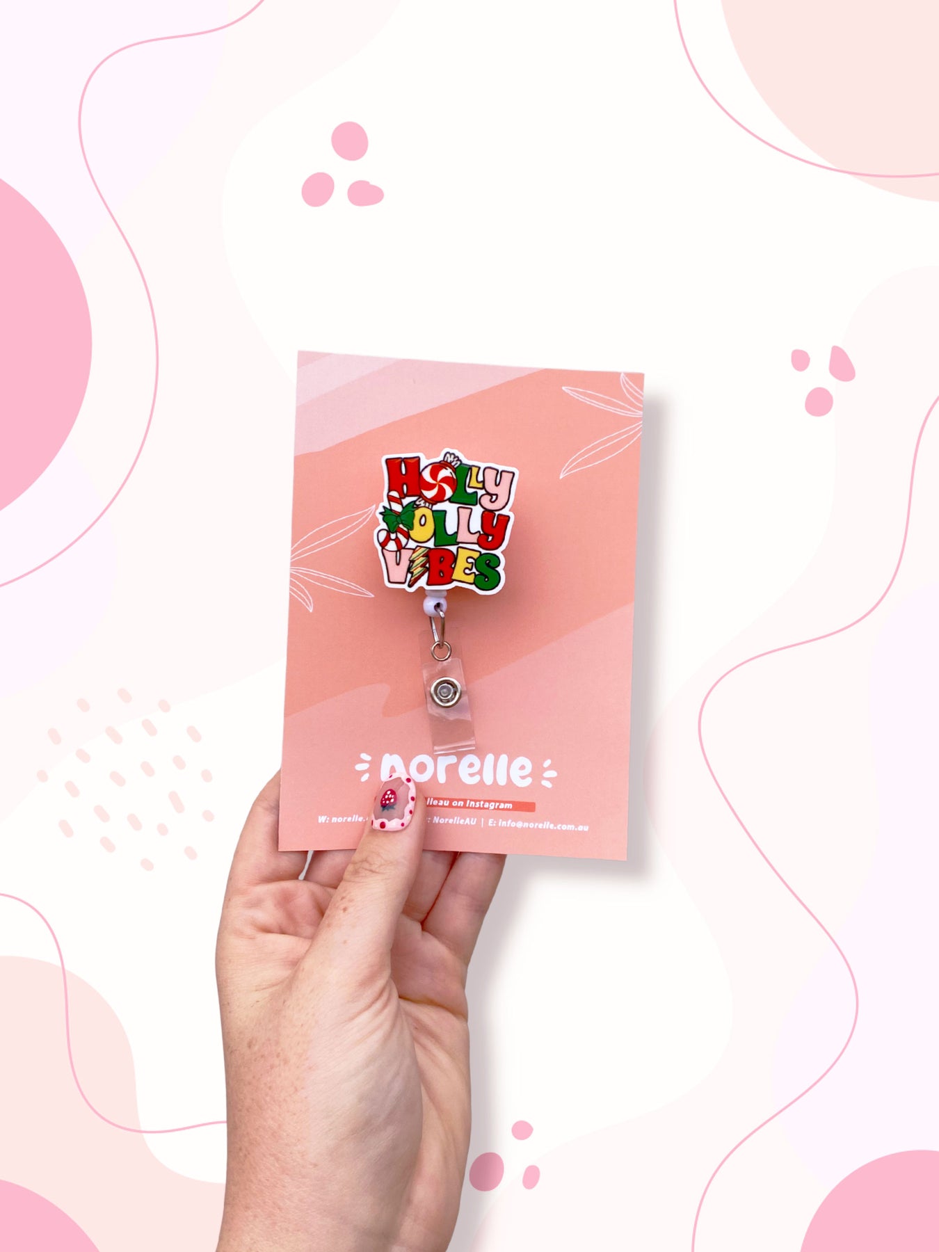 Holly Jolly Vibes Christmas Colourful Retractable Badge Reel | Nursing Badge Reel for Christmas