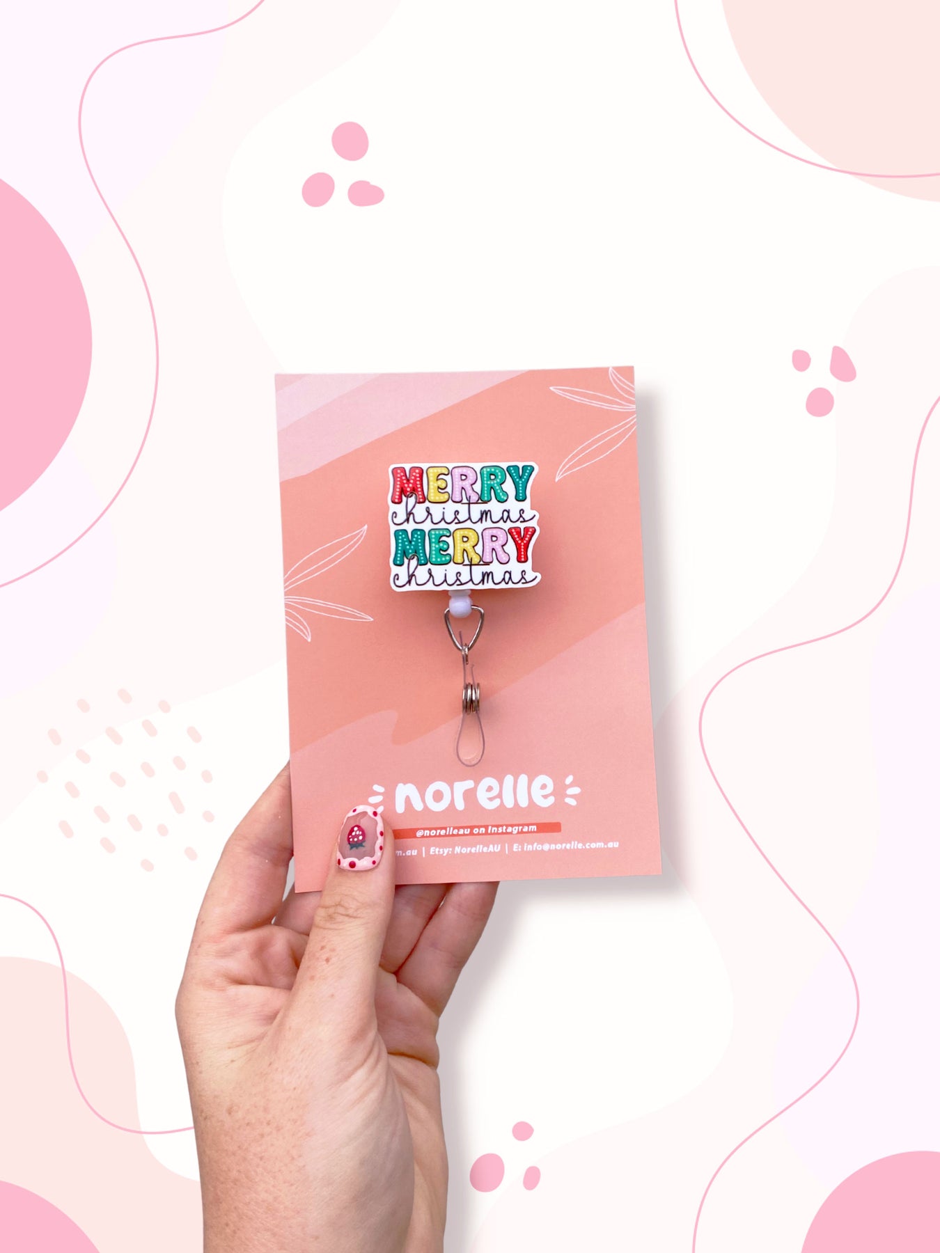 Merry Christmas Colourful Retractable Badge Reel | Nursing Badge Reel for Christmas