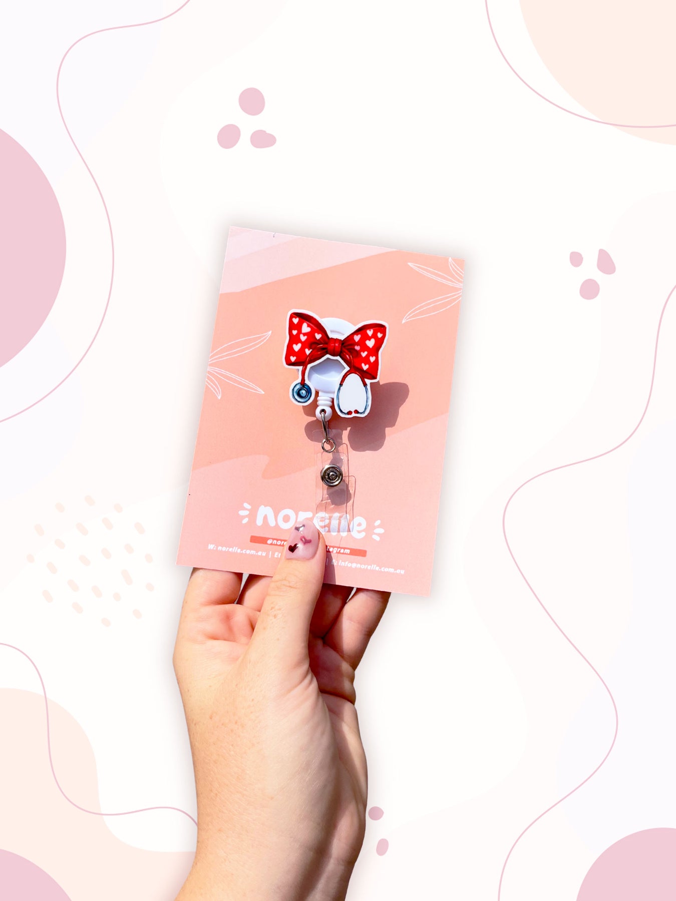 This badge reel is the perfect addition to your work uniform. The badge reel itself measures 30mm (3cm) however the icon on top of the reel is slightly larger. Cord length is 880mm (88cm). Badge reels have a Belt Clip on the back, ready to attach to your uniform. ♡