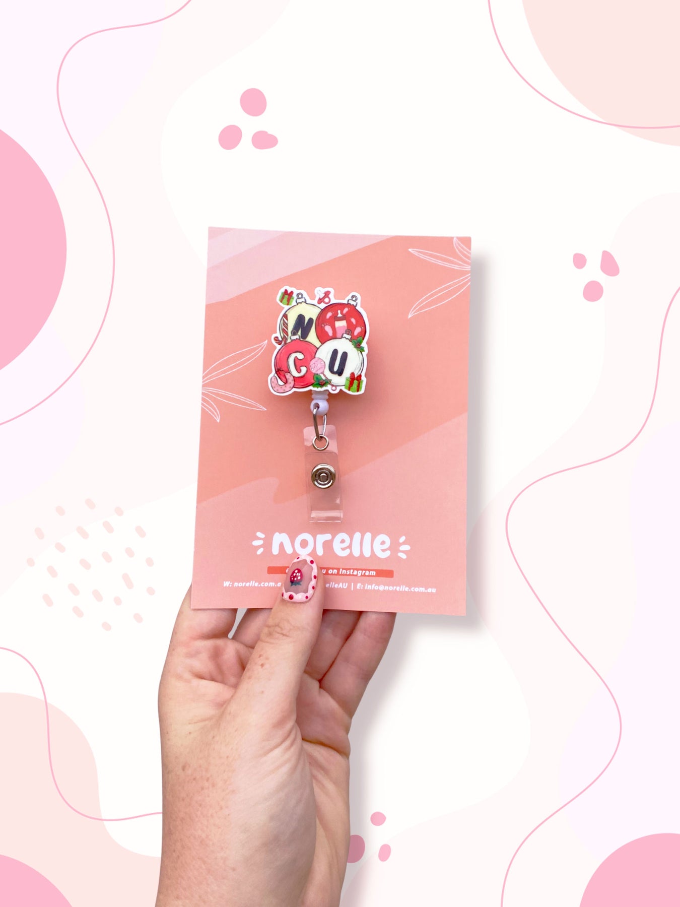 This Christmas badge reel is the perfect addition to your work uniform. The badge reel itself measures 30mm (3cm) however the icon on top of the reel is slightly larger. Cord length is 880mm (88cm). Badge reels have a Belt Clip on the back, ready to attach to your uniform. ♡